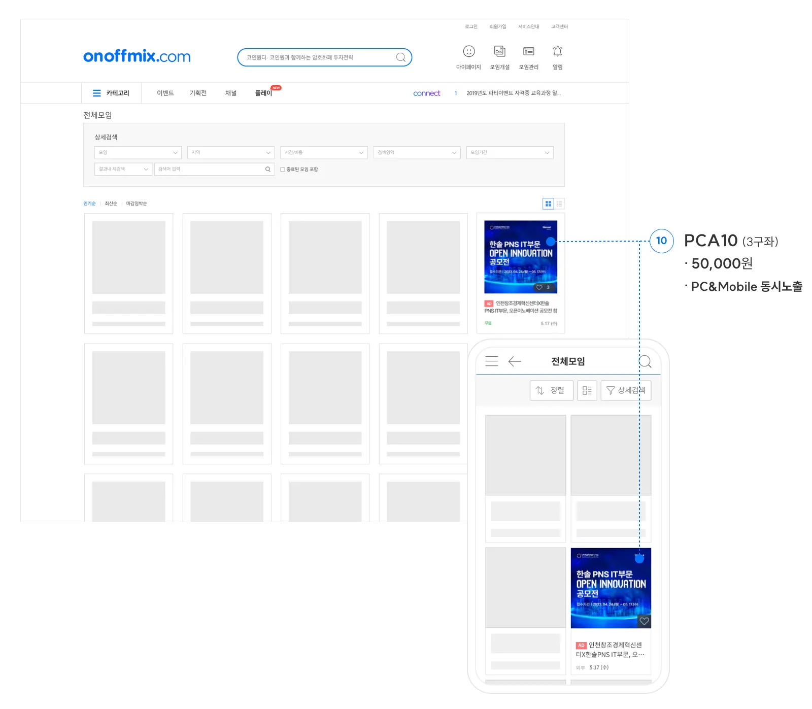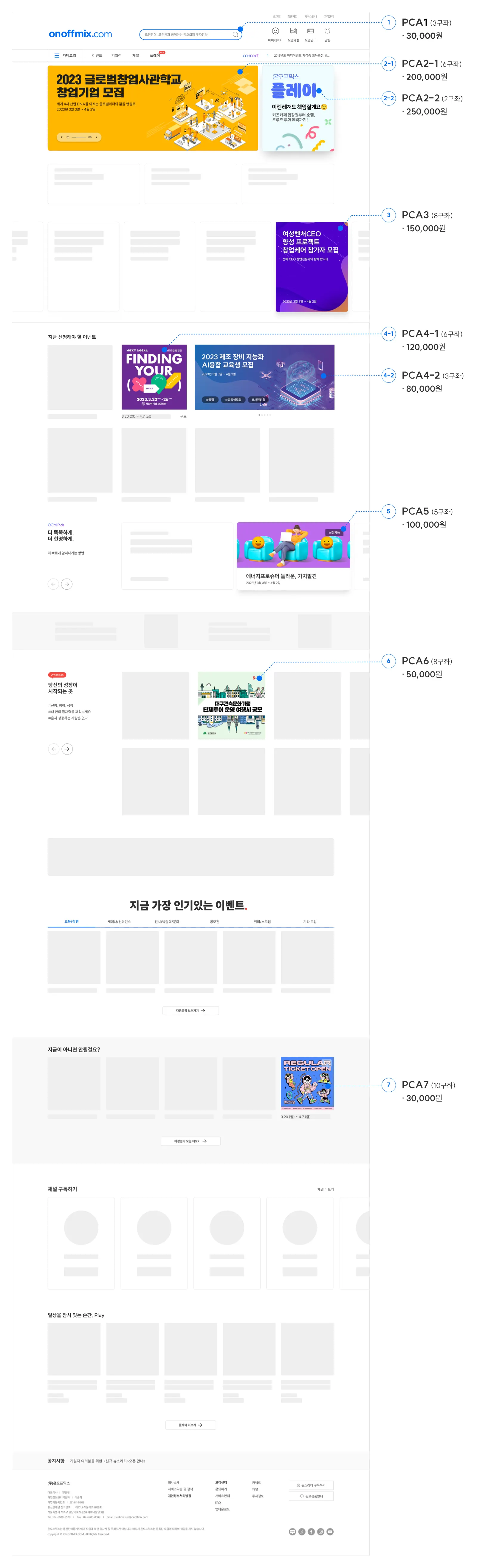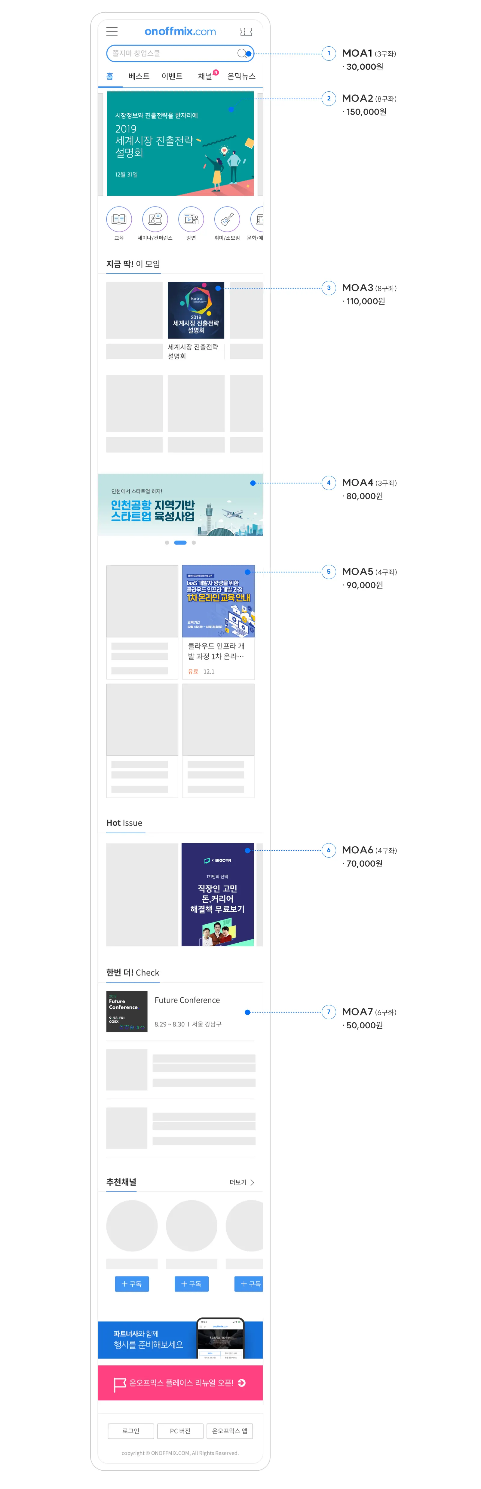 모든 광고상품은 온오프믹스에 등록된 '이벤트 페이지'로 연결됩니다.