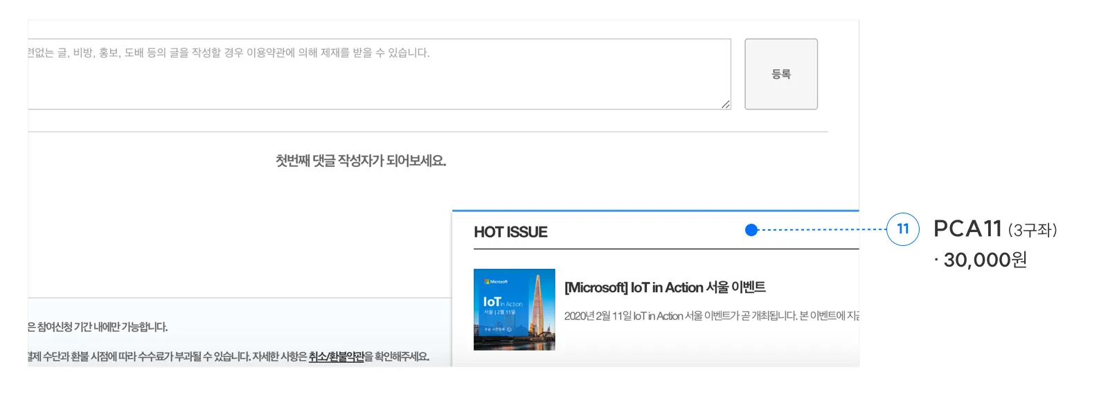 이벤트 상세페이지에서 하단으로 이동 시 우측에서 슬라이딩 되어 나타나요.